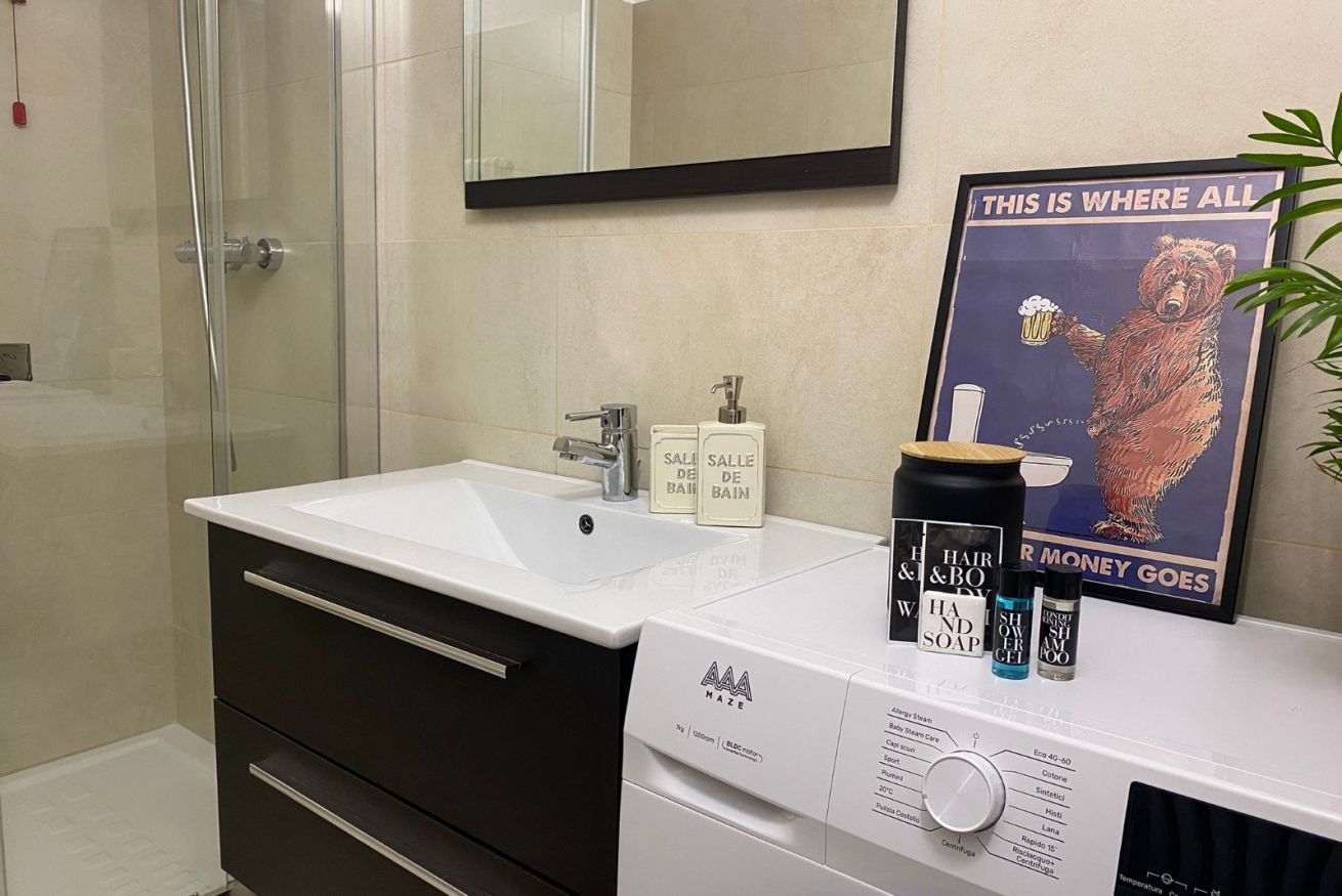 Cucina completa e attrezzata, soggiorno con divano letto matrimoniale comodo, camera matrimoniale, bagno con doccia.