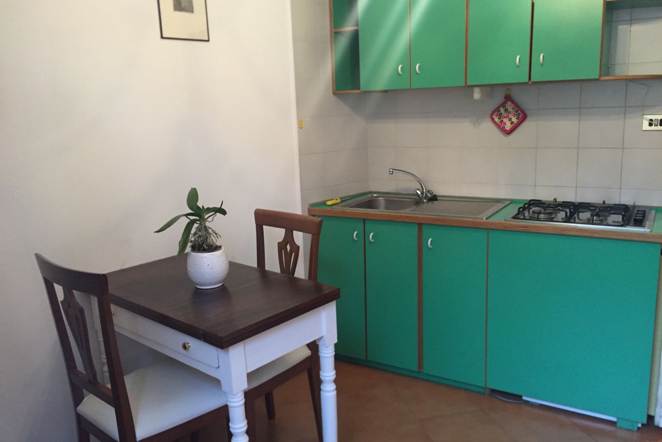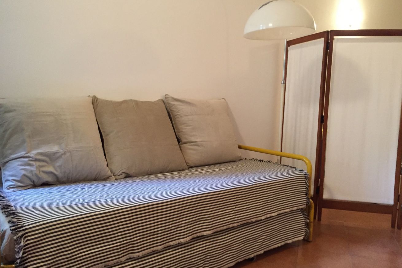 Appartamento dalle metrature ridotte ma grazioso. La camera da letto vanta un vero separè anni '50 per dividere la zona notte da un living che si trasforma in un ulteriore stanza con 2 letti singoli. Il bagno è essenziale, per dare più spazio a tutto il resto.